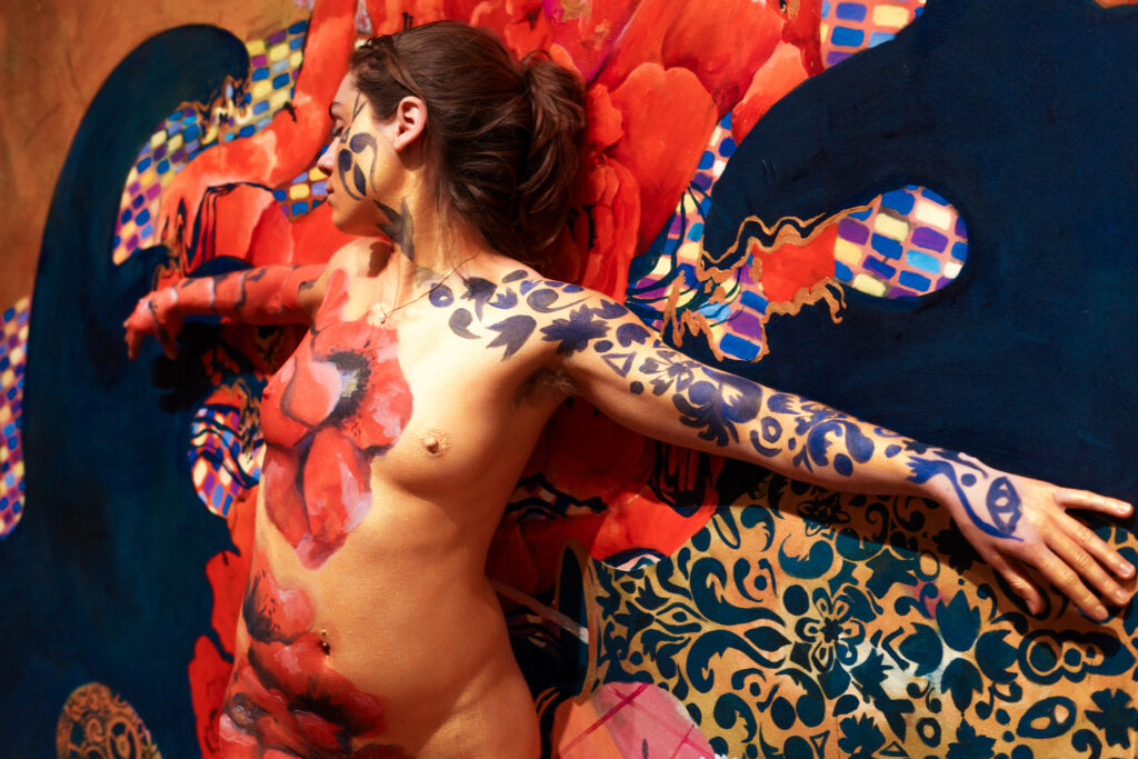 Letzte Woche hat Luisas neues Projekt viel Aufsehen erregt. Im Eingang der Galerie bemalte sie ihre Freundin, bevor wir sie fotografiert haben. Die fertigen Bilder könnt ihr bei unserer ersten Ausstellung sehen.